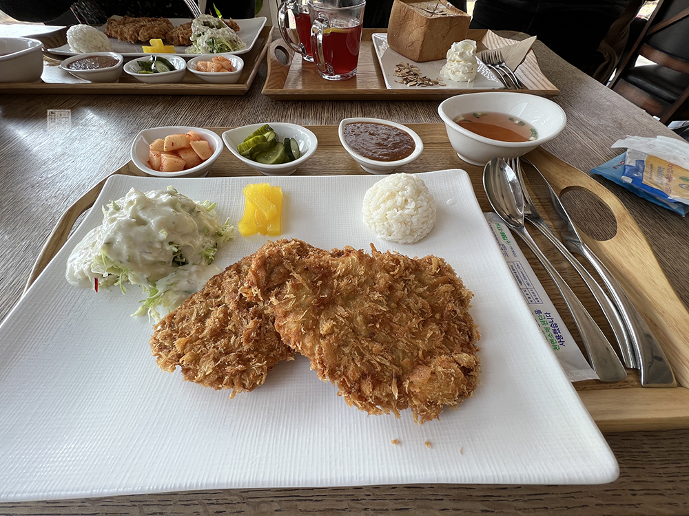 그리고 커피와 소나무는 카페라고 해도 오전 11시 30분부터 오후 3시까지 식사류도 판매하고 있었다. 식사류는 수제 돈까스가 딱 하나 있었는데, 당시 함안 입곡군립공원에서 약 1만 걸음을 걷고 온 터라 나는 이곳에서 간단히 음료를 마시면서 끼니를 때우는 게 아니라 수제 돈까스를 시켜서 제대로 식사 한 끼를 하고자 했다.