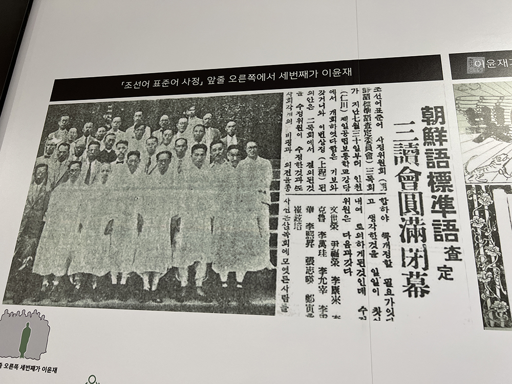 나는 옛 우리 교실과 교과서가 전시되어 있는 공간을 지나 제2전시실을 나온 이후 비로소 제1전시실을 둘러보았다. 여기 제1전시실은 한뫼 이윤재 선생의 업적이 기록되어 있는데, 과거 일제강점기 시절 우리 한글을 지키기 위해서 갖은 노력을 했던 다양한 한글 학자들과 함께 어떤 일을 주도했는지 한눈에 알 수 있도록 정리되어 있었다.