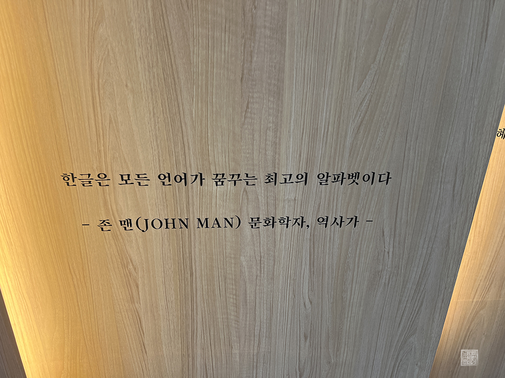 위 사진을 본다면 '한글은 모든 언어가 꿈꾸는 최고의 알파벳이다'라고 적혀 있다. 나는 이게 우리 한글이 가지고 있는 정체성을 가장 잘 드러낸 말이라고 생각한다. 한글은 소리 나는 그대로 적을 수 있는 표음문자이기 때문에 한글을 알파벳으로 익힌다면 우리는 어떤 말이라고 해도 한글로 해당 언어를 기록하거나 배울 수 있다.