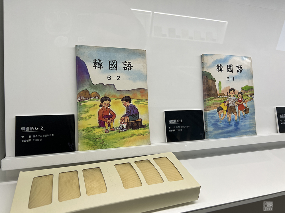 제2전시실의 끝자락에서 다시금 중앙 통로로 향하는 길을 가다 보면 아래 사진에서 볼 수 있는 옛 교실(오늘날 교실의 풍경도 크게 다르지는 않지만)을 재현한 동시에 옛날 교과서를 배치해둔 전시 공간을 볼 수 있다. 이곳에서는 터치 스크린 화면을 통해서 우리말 퀴즈도 풀 수 있어 제법 호기심 가득한 눈으로 둘러볼 수 있었다.