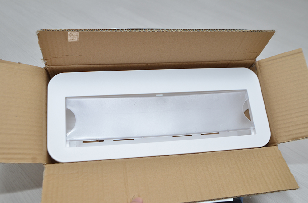 멀티탭 케이블 정리함이라고 해서 뭔가 특별한 무언가는 없었다. 사진에서 볼 수 있는 그대로 플라스틱 소재로 만들어져 있는 정리함인데, 보통 정리함과 다른 점은 '멀티탭'의 열기를 방출해야 하다 보니 바닥에도 구멍이 조금씩 뚫려 열기를 방출할 수 있도록 되어 있다는 점이다. 그리고 뚜껑도 열고 닫을 수 있도록 되어 있었다.