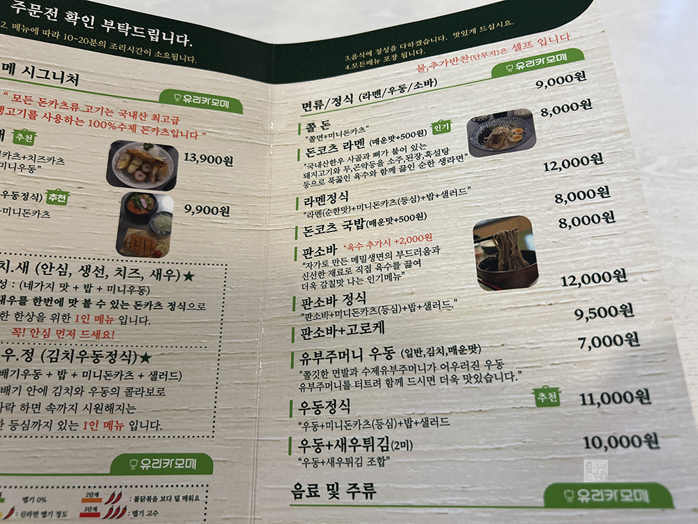 이곳의 메뉴판을 본다면 '1인 1메뉴 필수(어린이 포함)입니다'라고 적혀 있다. 아무래도 백화점에 위치한 가게이다 보니 종종 아이들을 데리고 쇼핑을 온 사람들이 메뉴 한두 개만 시켜놓고 자리를 차지하는 경우가 있어서 이런 규칙을 정해놓은 게 아닌가 싶었다. 특히, 주말에는 사람이 혼잡하기 마련이라 이런 사소한 규칙이 꼭 필요해 보였다.