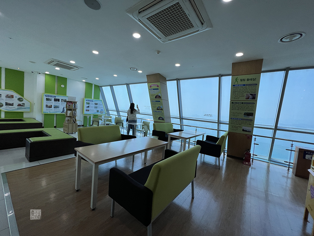 창원 솔라타워 전망대에는 단순히 한 없이 펼쳐진 수평선의 풍경을 바라볼 수 있을 뿐만 아니라 그 풍경을 병풍 삼아 책을 읽어볼 수 있는 북카페도 함께 있다. 전망대에서 한층 더 올라간다면 솔라파크 북카페를 만날 수 있는데, 해당 북카페서는 많은 책은 없어도 몇 권의 책과 함께 풍경을 즐길 수 있도록 잘 다듬어져 있었다.