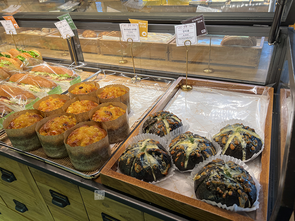 베이커리 내외점의 모습을 천천히 둘러보면 하루에 한 번 생산해 판매하는 인기 있는 빵들은 재고가 살짝 부족하다는 것을 알 수 있고, 수시로 구워서 떨어지면 다시 보충하는 빵들은 여전히 재고가 많은 모습을 볼 수 있다. 사람들 사이에서 국민 빵으로 불리는 노란색 슈크림이 들어간 슈크림 빵과 소보루는 오후라고 해도 상당히 재고가 있었다.