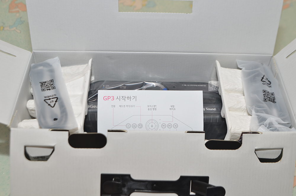 그리고 처음 스피커를 포장재에서 꺼냈을 때 볼 수 있는 스피커 본체에 붙은 각 부위 버튼의 기능을 나타내는 문구가 적힌 설명서(?)는 종이로 되어 있을 뿐만 아니라 접착 흔적이 남지 않게 붙어 있기 때문에 쉽게 제거할 수 있다. 이를 제거하기 전에 먼저 스피커의 전후면을 살펴보면서 혹시 문제가 있지는 않나 자세히 살펴보는 게 먼저였다.