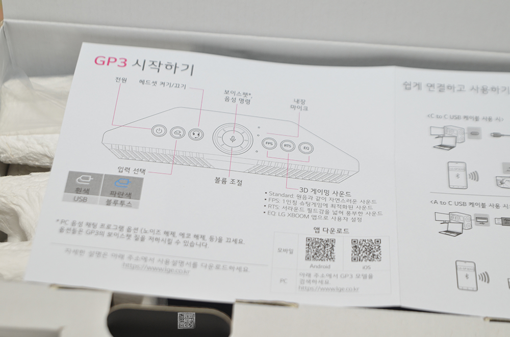 해당 스피커는 일반 USB 콘덴서를 지원하기도 하지만 기본적으로 C타입 케이블을 기본적으로 지원하고 있다. 최근에 발매된 컴퓨터 메인보드를 본다면 대체로 C타입 케이블 단자가 있는데, 나는 한동안 사용할 곳이 없어 방치하고 있다가 LG 울트라기어 게이밍 스피커 GP3를 구매하고 나서 처음으로 C타입 케이블 단자를 사용할 수 있었다.