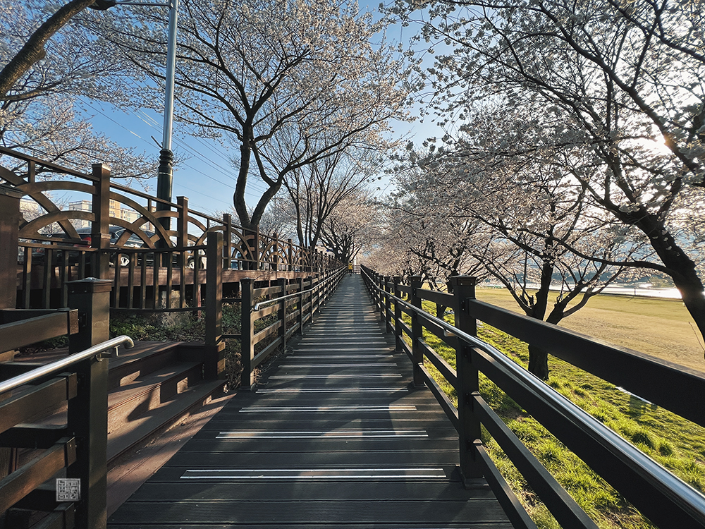 이 산책로를 걸으면서 볼 수 있는 벚꽃과 벚꽃이 핀 벚나무 아래에서 돗자리를 깔고 시간을 보내는 모습은 모든 고민을 잊게 할 정도로 아름다웠다.