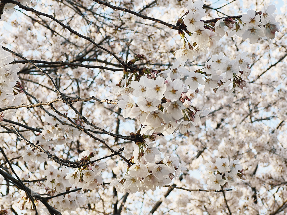 산책로를 따라 걷다 보면 일부 공간에서는 반려견과 함께 온 사람들이 함께 시간을 보내는 모습도 볼 수 있었는데, 사람들이 흔히 말하는 '마치 동화 속 풍경처럼 아름다운 풍경'이라는 건 바로 이런 풍경이 아닐까. 정말… 벚꽃잎이 흩날리는 벚나무를 멀리서 지켜보거나 벚나무 아래를 걷거나 잠시 앉아 있는 시간이 너무 좋았다.