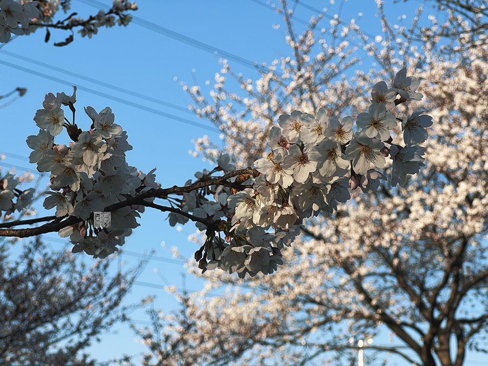 차를 주차한 이후 볼 수 있었던 밀양 삼문동 벚꽃길의 모습은 마침 해가 기울기 시작한 시간이라 더욱 그 풍경이 두드려졌다. 흔히 사진은 빛을 활용한 예술이라고 말하는데… 딱 오후 5시가 넘어간 당시에는 굳이 우리가 빛의 양과 구도를 생각할 필요 없이 그냥 스마트폰을 꺼내서 스마트폰 카메라로 찍는 순간 예술이 되는 듯한 느낌이었다.
