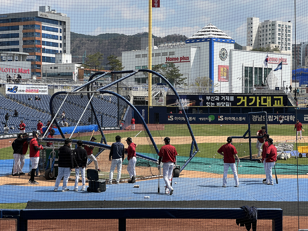 야구장 내부로 들어가니 SSG 랜더스 선수들이 몸을 푸는 모습을 볼 수 있었는데, 창원 NC 파크는 어디에 자리를 잡고 앉더라도 야구장을 한눈에 바라볼 수 있는 탁 트인 시야를 자랑하고 있기 때문에 어느 좌석에 앉더라도 야구를 실감나게 감상할 수 있다. 단, 특정 자리에 앉아야 치어리더와 선수들을 볼 수 있으니 참고하도록 하자.