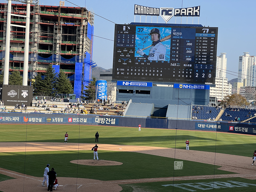 그렇게 피자를 먹은 이후 창원 NC 파크 개막 행사가 치러지고 나서 본격적으로 시합이 시작되었다. 4월 2일(토)에 열린 시합은 SSG 랜더스의 선발투수가 압도적인 피칭을 보여주며 NC 타자들이 1루를 밟는 것을 허락하지 않았다. 한국 프로야구 사상 처음으로 9이닝 퍼펙트 피칭― 노히트 노런 기록을 세우며 야구팬들을 놀라게 했다.
