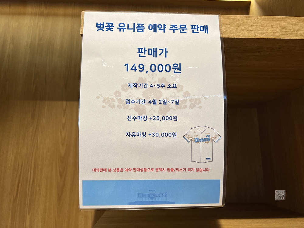 당시 큰 마음을 먹고 '벚꽃 유니폼 하나 예약 주문을 할까?' 싶었지만, 선수 마킹은 되어 있지 않더라도 이미 유니폼 한 벌을 가지고 있기 때문에 큰 욕심은 부리지 않았다. 대신 당일 시합이 끝나고 나올 때 팀스토어를 들려서 단디와 쎄리 두 마스코트의 인형을 한 개씩 구매해서 기념으로 가져왔다.