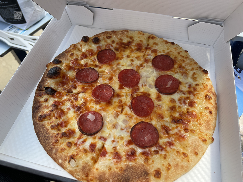 대충 야구장을 다 둘러본 이후 나는 아직 먹지 않은 점심을 먹기 위해서 창원 NC 파크 내부에 있는 피자 가게에서 '단디 피자'로 불리는 페페로니 피자를 주문해서 먹기로 했다. 해당 피자를 본다면 사이즈는 그렇게 크지 않았고, 페페로니도 생각보다 적게 들어가 있어 아쉽기는 해도… 갓 구워진 피자라 무척 맛있게 먹을 수 있었다.