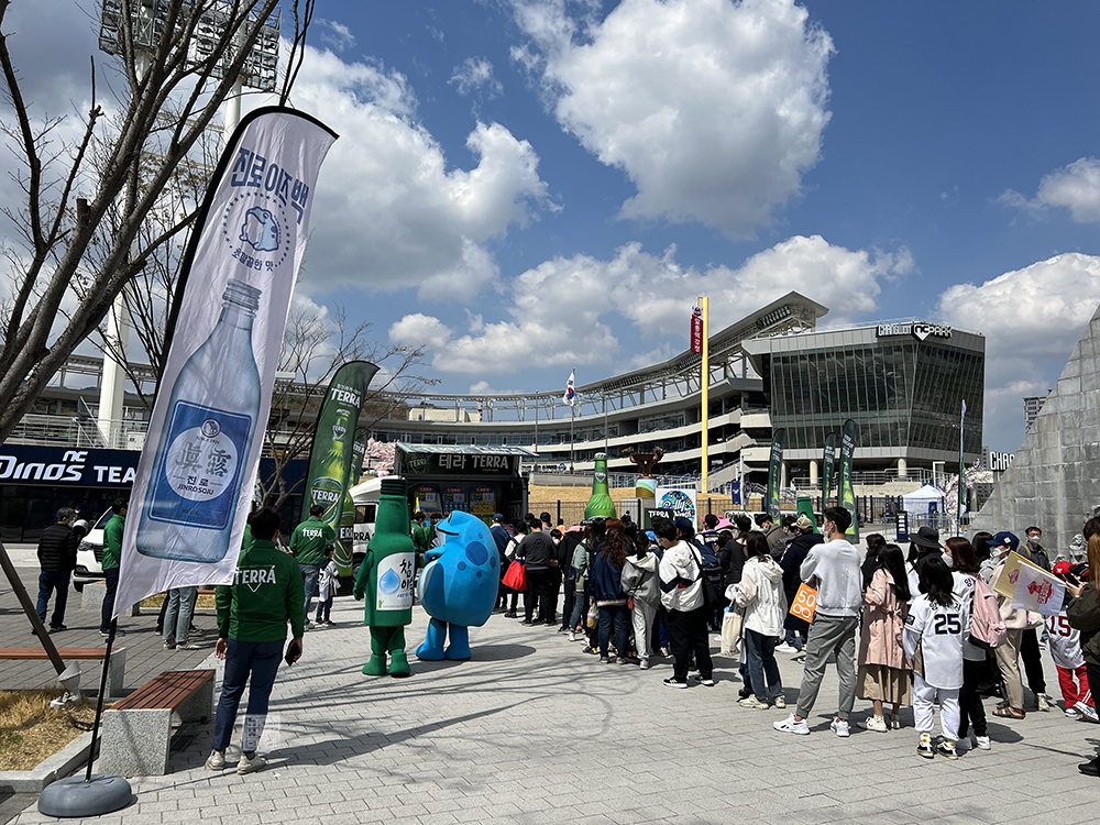 시합이 시작하기까지 약 3시간이 남은 데다가 경기장에 입장할 수 있는 12시까지 1시간이 남은 상황에서 도착했음에도 창원 NC 파크 주변에는 많은 인파가 몰려 있는 것을 볼 수 있었다. 처음 차에서 내렸을 때는 '설마 입장 대기줄인가?' 싶어서 당황했던 줄은 테라와 진로에서 진행하고 있는 이벤트에 참여하기 위한 대기줄이었다.