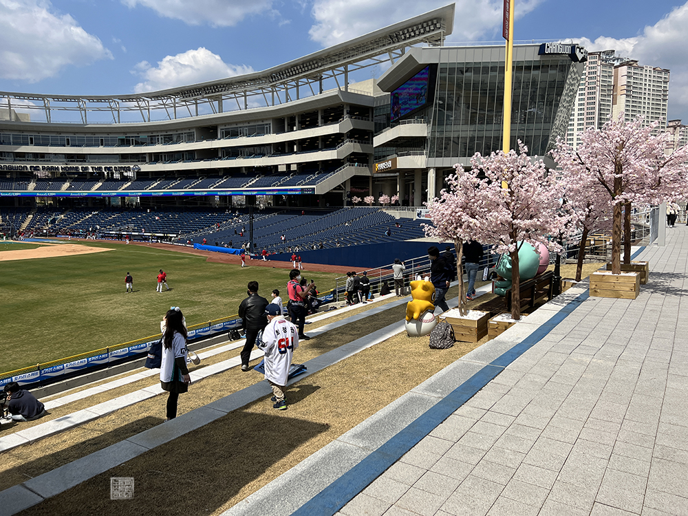 아마 이건 사람의 성향이라고 생각하는데… 현재 모든 야구장에서 마스크 착용을 빼고 규제가 다 풀린 상태이기 때문에 좌석에 앉아서 음식을 먹을 수 있다는 건 팩트이니 오해하지 말자. 당시 내가 피자를 급히 먹고 나서 박스를 버린 이후 본격적으로 야구가 시작했을 때 앞에 앉은 다른 커플은 닭강정을 사서 시합을 보며 열심히 먹었다.