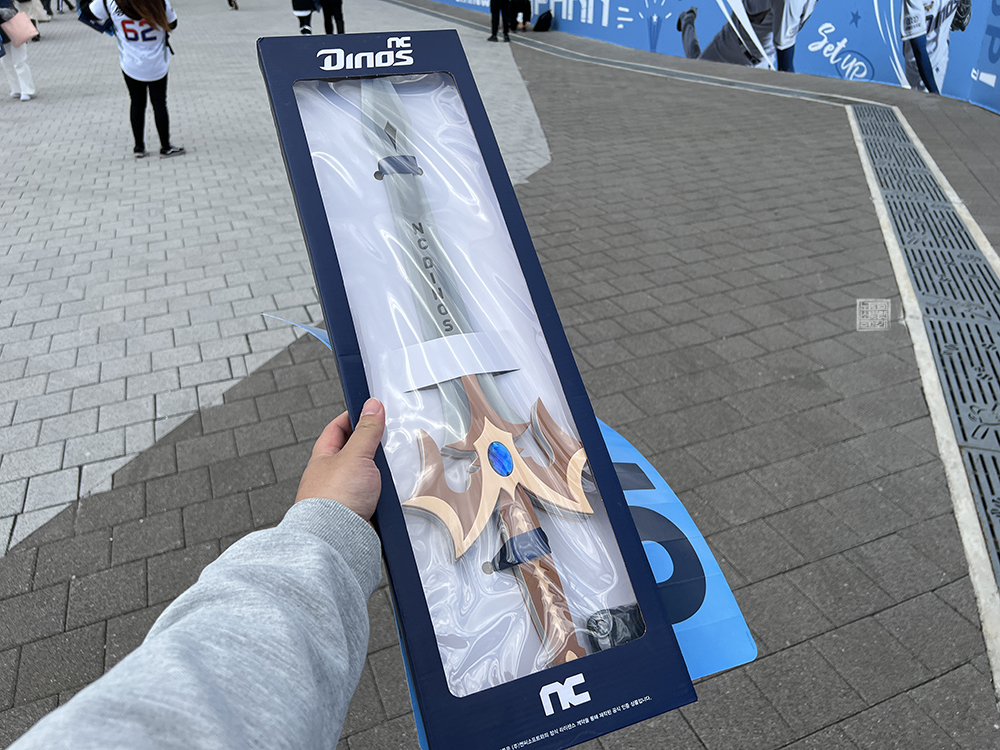 일찍 야구장에 도착해 주변을 둘러보며 사진을 찍거나 팀스토어를 찾아 여러 상품을 구경한 이후 정문 1번 게이트에서 줄을 서 있다가 12시를 맞아 곧바로 야구장에 입장을 했다. 당시 야구장을 찾은 팬들을 대상으로 NC 다이노스는 응원 도구 두 가지를 나눠주었는데, 하나는 쥘부채를 만드는 종이와 또 다른 하나는 집행검이었다.