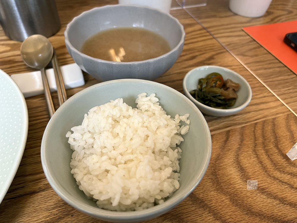 하지만 따로 공깃밥과 시래기 된장국, 간단한 밑반찬이 함께 나오기 때문에 평소 우리가 돈까스 전문점을 찾았을 때 받을 수 있는 밑반찬(?) 구성은 다 있다고 생각하면 된다. 어디까지 우리에게 중요한 건 돈까스이기 때문에 일단 돈까스를 먹는 데에 집중할 수 있는 형태의 그릇 구성이라 허전해 보여도 이게 썩 괜찮았다고 생각한다.