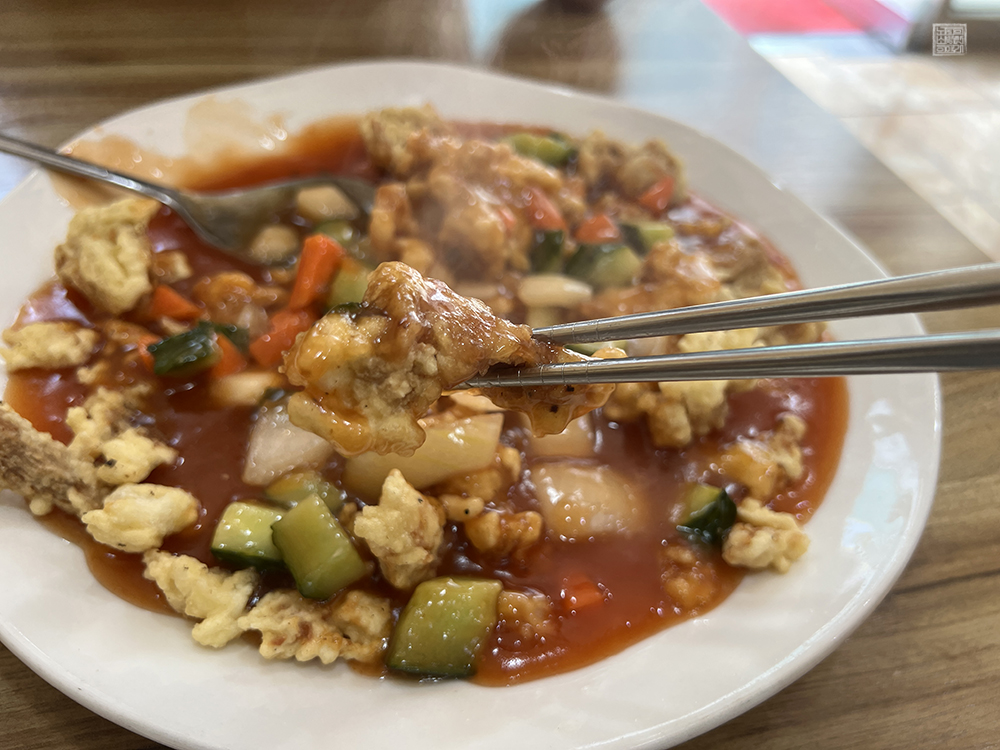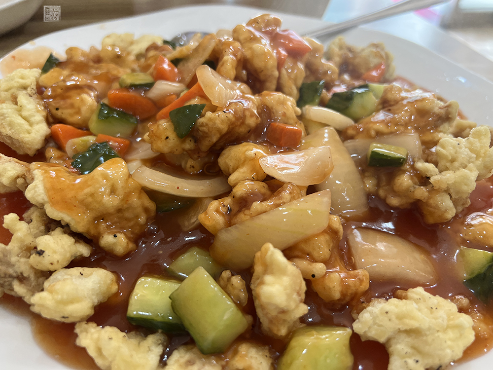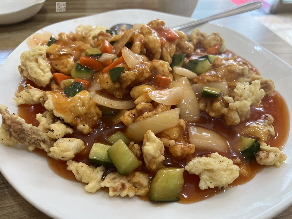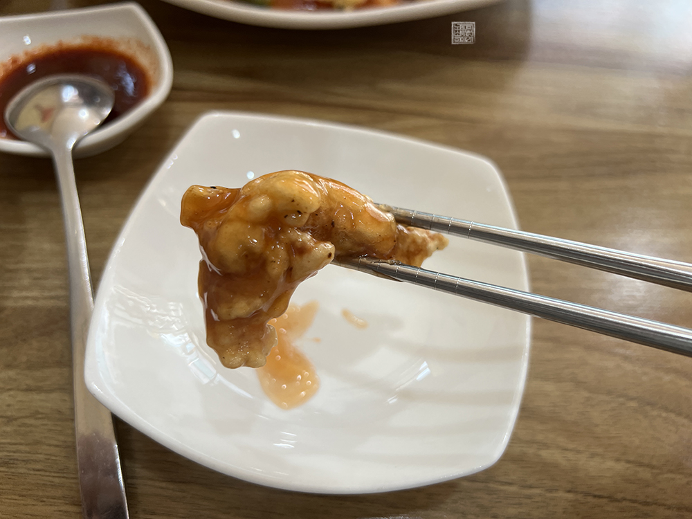 김해 경화춘에서 탕수육을 주문한다면 기본적으로 위 사진처럼 탕수육 소스가 탕수육 위에 뿌려져서 나온다. 그렇기 때문에 탕수육을 찍먹 하는 것을 좋아하는 사람들은 다소 호불호가 나누어질 수 있는데, 경화춘의 탕수육은 부먹 상태로 먹더라도 탕수육의 바삭한 튀김과 함께 잘 익은 고기와 소스의 맛을 있는 그대로 다 즐길 수 있다.
