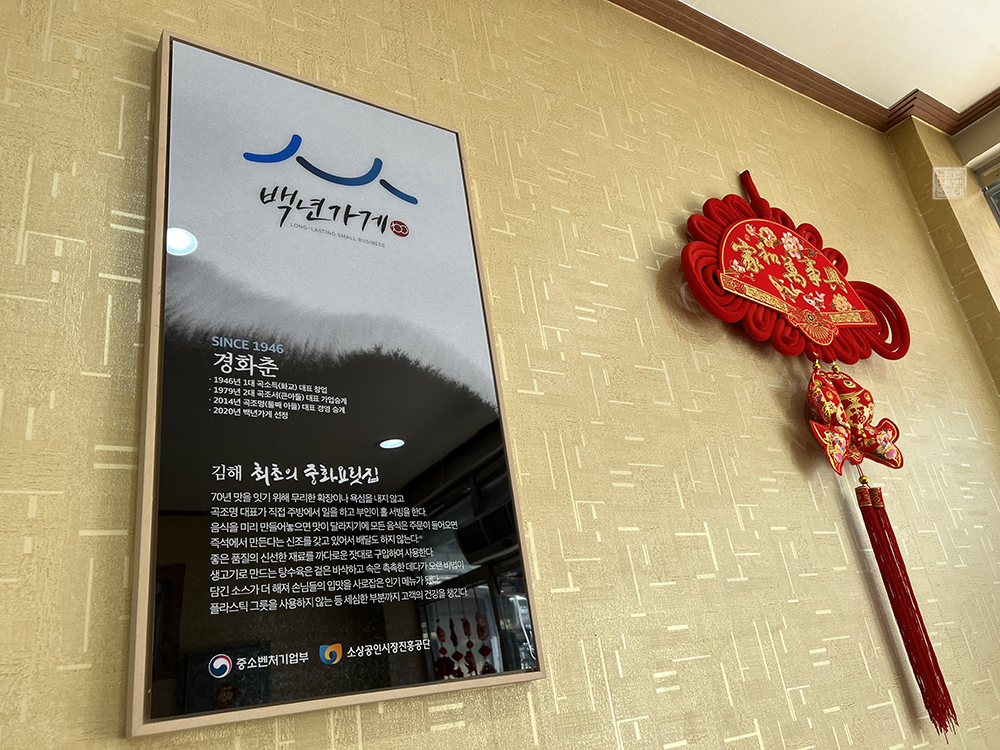 평소 김해를 찾으면서 대중적인 맛집만 아니라 김해 토박이만 알고 있는 맛집을 찾아보고 싶은 사람에게 나는 경화춘을 적극적으로 추천하고 싶다. 경화춘이 있는 골목은 외국인들이 자주 다니는 거리라 살짝 꺼려질지도 모르지만, 위생 방역이 철저할 뿐만 아니라 근처에 같은 백년 가게가 몇 개나 있기 때문에 둘러보는 재미도 있는 곳이다.