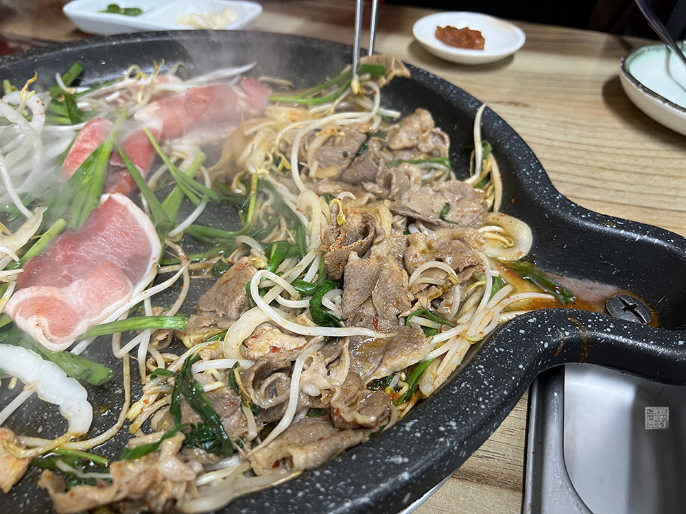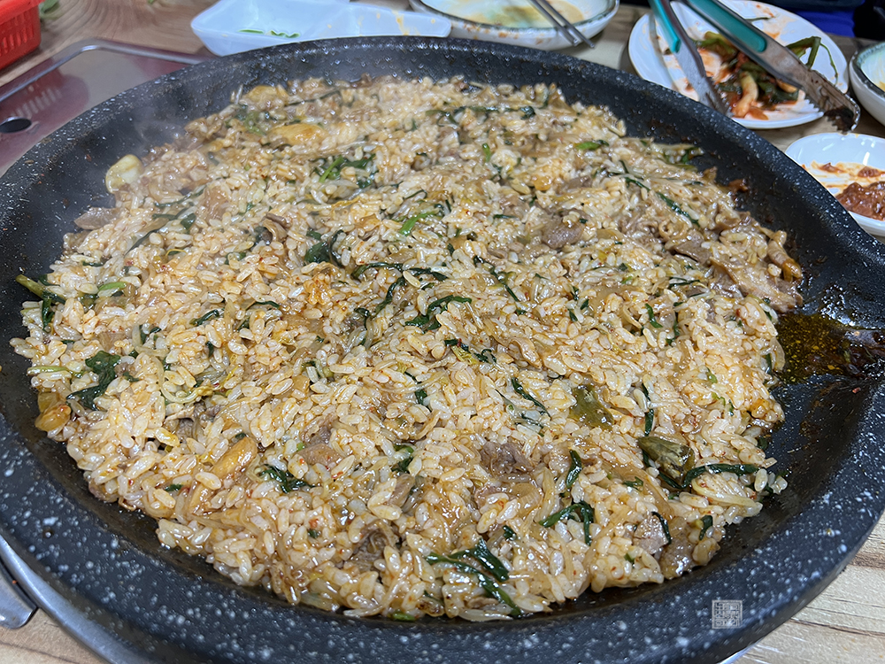 한국 사람이라면 이런 맛있는 양념이 사용된 고기의 마무리는 항상 볶음밥으로 마무리를 하는 게 암묵적인 규칙이다. 밥은 볶음밥 두 개를 주문해서 볶았는데… 이상하게도 고기를 먹고 나서 볶은 볶음밥은 밥을 볶은 판이 커서 그런 건지 괜스레 양이 많아 보였다. 그리고 실제로 먹었을 때도 역시 마지막에는 상당히 배가 불렀다.