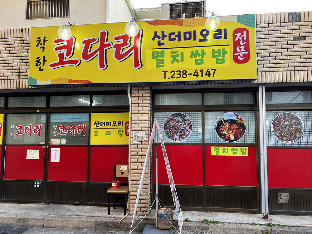 세 명이서 저녁을 먹기 위해 찾은 곳은 이모가 적극적으로 추천한 '착한 코다리 (멸치 쌈밥) 전문'이라는 이름의 가게다. 이 가게는 특정 요리를 전문으로 하고 있다는 것을 알리기 위해 가게 이름을 '착한 코다리 (멸치 쌈밥) 전문'이라는 이름으로 정해 간판으로 사용하고 있는 것 같았다. 즉, 다시 말해서 이런 가게는 지역 주민만 아는 가게였다.