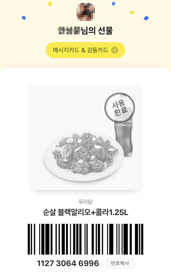 ▲ 카카오톡 선물하기로 받았다