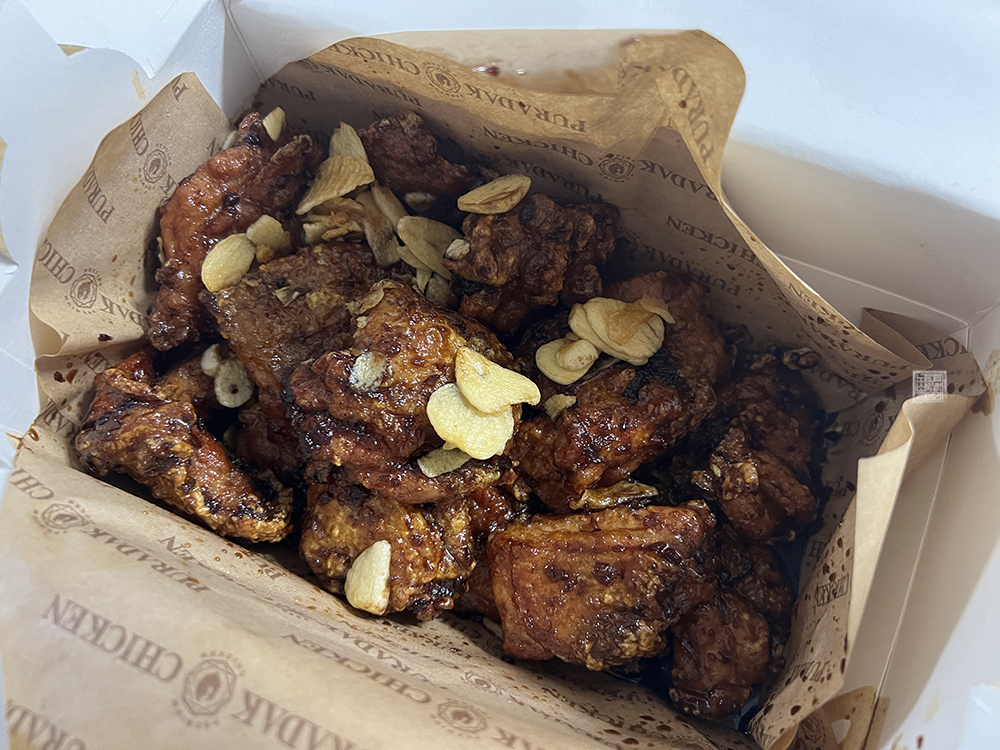 푸라닭의 치킨은 오븐에 구워져서 나오기 때문에 기본적으로 튀김의 바삭함보다는 오븐구이 치킨이 가지고 있는 깔끔한 맛을 즐길 수 있는 치킨이다. 여기에 간장을 베이스로 맛을 낸 블랙 알리오 치킨을 주문해서 함께 받아볼 수 있는 마요 소스에 찍어 먹으면 단짠의 조합을 제대로 즐길 수 있을 것이다. 마치 야구의 공격과 수비처럼….