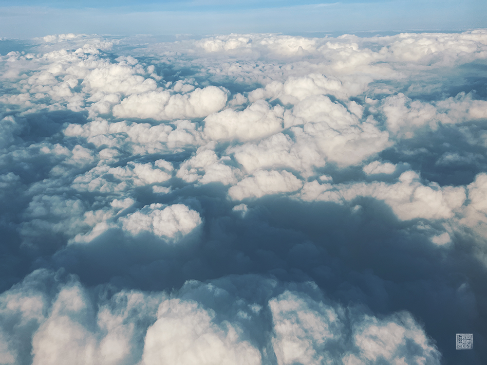 짙은 구름을 뚫고 올라갈 때는 너무 무서웠지만, 하늘 위에 다다라 볼 수 있는 구름의 모습은 정말 환상적이었다. 굳이 다른 구도를 찾거나(어차피 비행기 창가라 다른 구도를 찾을 수 있는 방법이 없다) 이리저리 고심을 하지 않고 그냥 스마트폰 카메라로 찍어도 환상적인 사진을 손에 넣을 수 있었다. 이 맛에 비행기를 탄다고 말할 수 있지 않을까?