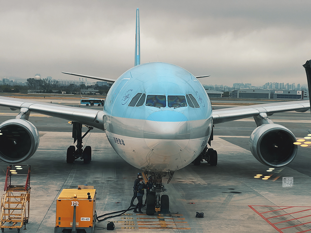 탑승 시간까지 조금 여유가 있기 때문에 창이 있는 의자에 앉아서 시간을 보냈는데 그동안 제법 공항다운 분위기의 풍경을 볼 수 있었다. 비행기에 연료를 주입하는 듯한 모습을 비롯해 손님을 태우기 위해 점검 작업을 분주하게 하고 있는 사람들의 모습을 보니 괜스레 여행을 떠나고 싶은 기분이 들기도 했다. 이미 서울 여행을 마쳤지만….