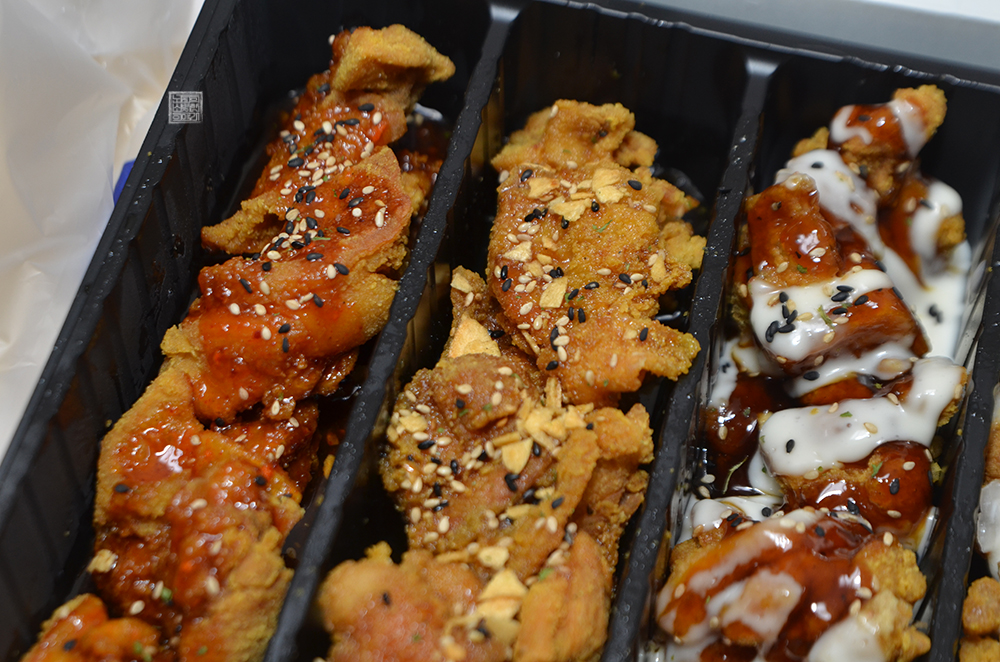 실제로 먹어봤을 때 치킨 조각 하나하나가 살이 가득하게 들어가 있다기보다는 살짝 튀김이 두꺼운 느낌이었다. 그리고 치킨 맛은 상대적으로 나쁘지 않았는데, 다섯 가지 맛 중에서 나와 동생은 분명하게 호불호가 나누어지는 게 하얀 크림 소스가 묻은 치킨과 살짝 매콤한 맛이 있는 붉은 양념에 슈프림이 더해진 치킨이었다.