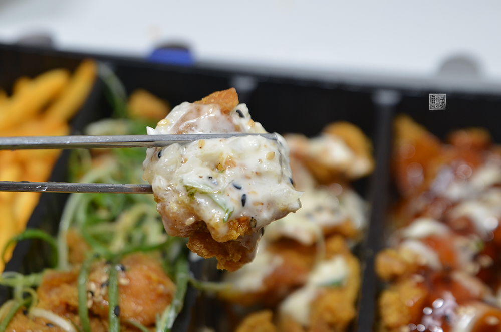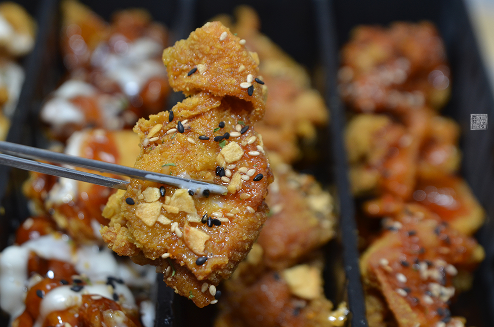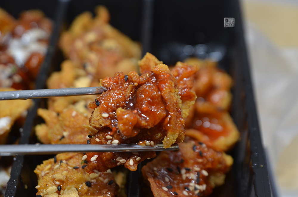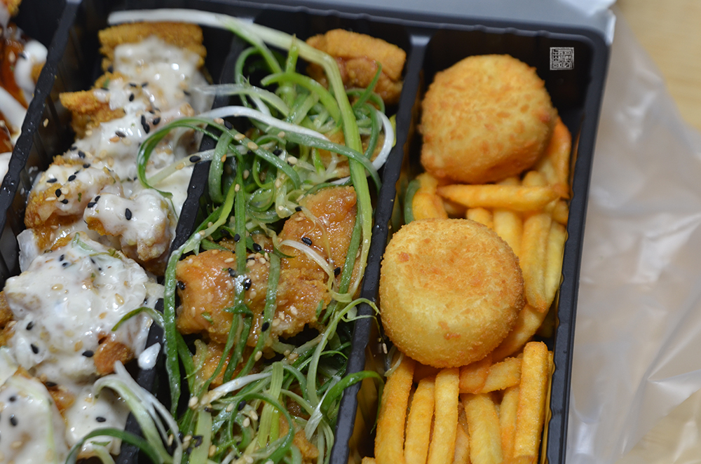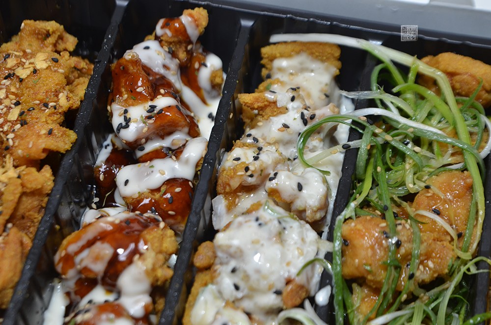 실제로 먹어봤을 때 치킨 조각 하나하나가 살이 가득하게 들어가 있다기보다는 살짝 튀김이 두꺼운 느낌이었다. 그리고 치킨 맛은 상대적으로 나쁘지 않았는데, 다섯 가지 맛 중에서 나와 동생은 분명하게 호불호가 나누어지는 게 하얀 크림 소스가 묻은 치킨과 살짝 매콤한 맛이 있는 붉은 양념에 슈프림이 더해진 치킨이었다.