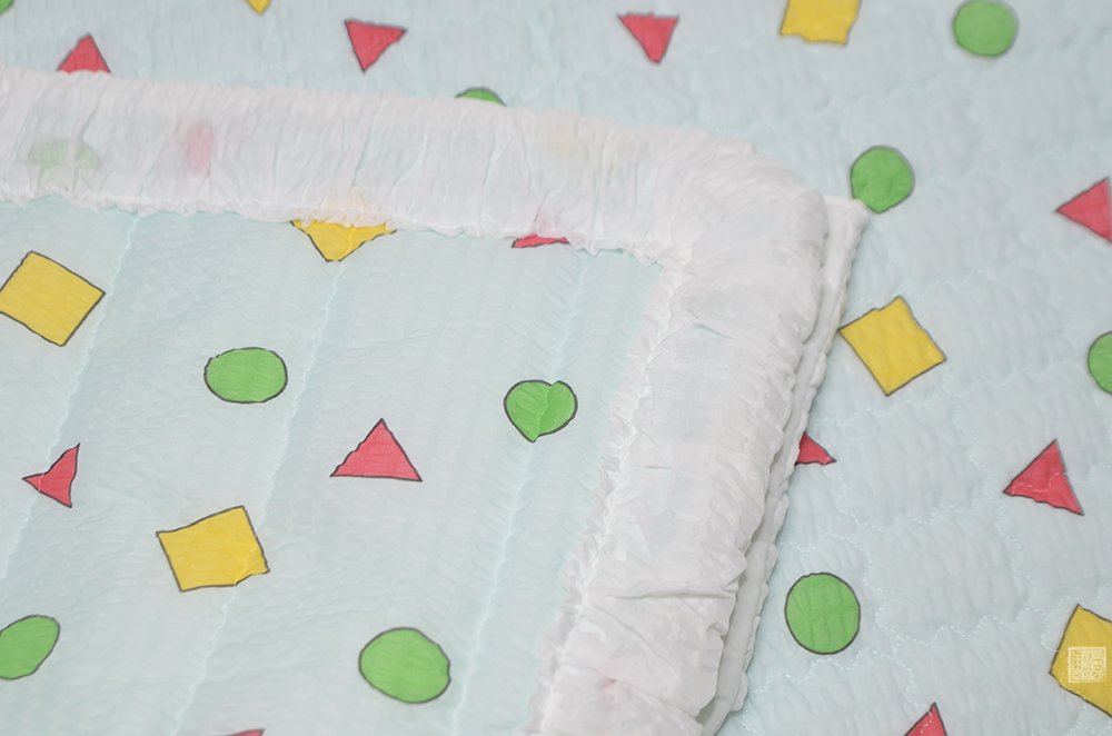 이불 패드는 뒷면에 미끄럼 방지 도트 원단이 사용되어 있기 때문에 나처럼 바닥에서 사용하더라도 이불이 크게 미끄러지는 일은 없었다. 괜스레 힘을 주어서 이불을 옮기지 않는 이상 처음 패드를 깐 곳에서 패드가 딱히 움직이지는 않았는데, 마감 처리도 잘 되어 있는 데다가 무엇보다 사용된 패턴 무늬가 짱구 잠옷이다 보니 무척 마음에 들었다.