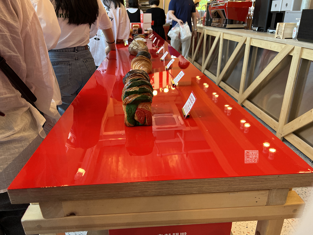 당시 내가 입장이 가능한 시간까지 줄을 서서 기다리는 동안에도 홍철 책빵의 시그니처 메뉴이자 가장 인기 있는 메뉴로 인터넷에서 유명한 고르곤졸라 치아바타, 생식빵 등은 금방 품절이 되어 "총 19가지 종류 중 두 종류의 빵이 품절되었습니다."라며 안내를 하는 직원들의 모습을 볼 수 있었다. 맛있는 빵에 대한 수요는 대단한 것 같다. (웃음)