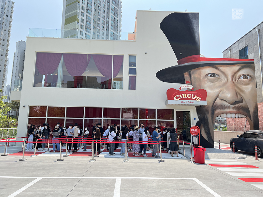 홍철 책빵의 오픈 시간은 오전 11시이지만… 워낙 사람들이 많이 찾는 유명 명소가 되다 보니 일찍 줄을 서는 경우가 빈번하게 발생하는 곳이다. 내가 당시 도착했던 시간은 오전 10시 40분 정도인데 이미 많은 사람이 빨간 선을 따라 줄을 서 있는 모습을 볼 수 있었다. 절대 빵을 적게 파는 것이 아님에도 불구하고 발걸음을 서두르는 사람들이 많았다.