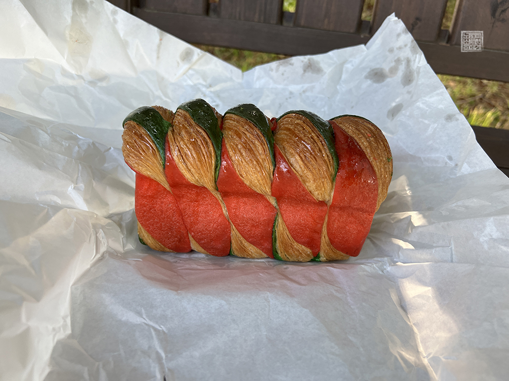 제일 먼저 볼 수 있는 식빵 럭키가이 홍철은 평범한 식빵과 달리 '럭키가이 홍철'이라는 시그니처 메뉴 이름이 붙은 만큼 알록달록한 색깔을 보여주고 있었다. 해당 빵은 가게 내부로 들어오기 위해 줄을 선 나와 달리 드라이브 스루로 줄을 섰던 어머니가 주문을 하셨기 때문에 나는 해당 빵은 체크를 하지 않고 먹고 싶은 빵을 골고루 체크했다.