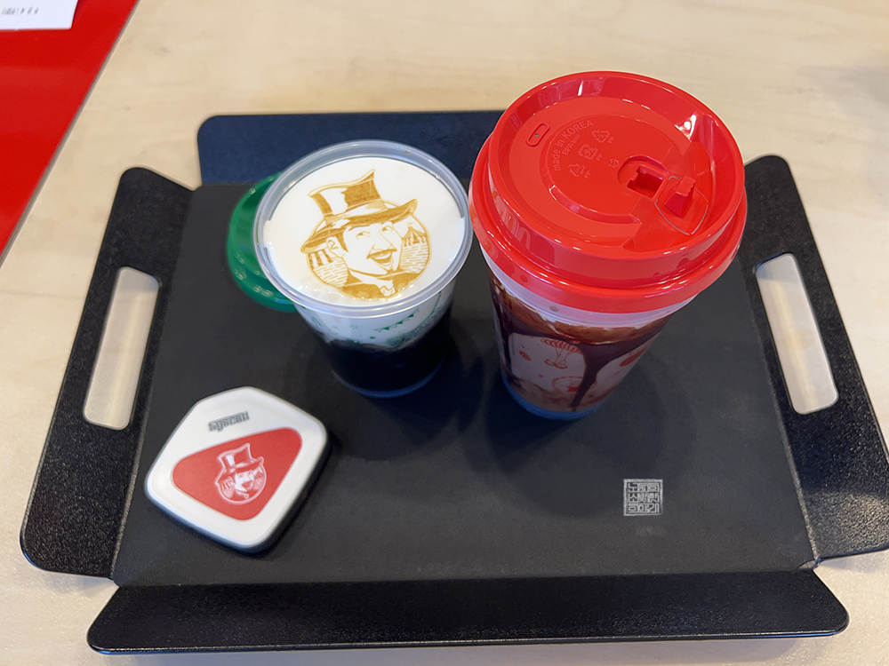 그리고 빵을 받기 전에 주문한 음료를 먼저 받아볼 수 있었는데, 음료는 노홍철 얼굴이 라떼 장식으로 들어가 있는 럭키가이카페와 함께 개인적인 취향에 맞춘 벨지안 초콜릿을 주문했다. 내가 줄을 서서 기다리는 동안 어머니는 드라이브 스루를 빠져나와 장유에서 볼 일이 있던 동생을 다시 태워서 기다리고 있었기 때문에 빠르게 나가려고 했다.