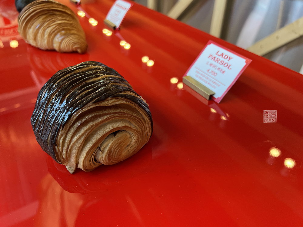 위 사진에서 볼 수 있는 빵은 절대 남녀노소 연령불문 호불호가 나누어지지 않는다고 하는 크로와상과 함께 개인적으로 먹어보고 싶었던 레이디 파라솔이다. 레이디 파라솔은 부드러운 빵 기질에 초콜릿이 포인트로 들어가 있어서 제법 달달한 맛을 즐길 수 있었고, 크로와상은 평소 먹는 어느 크로와상과 마찬가지로 맛있게 먹을 수 있었다.