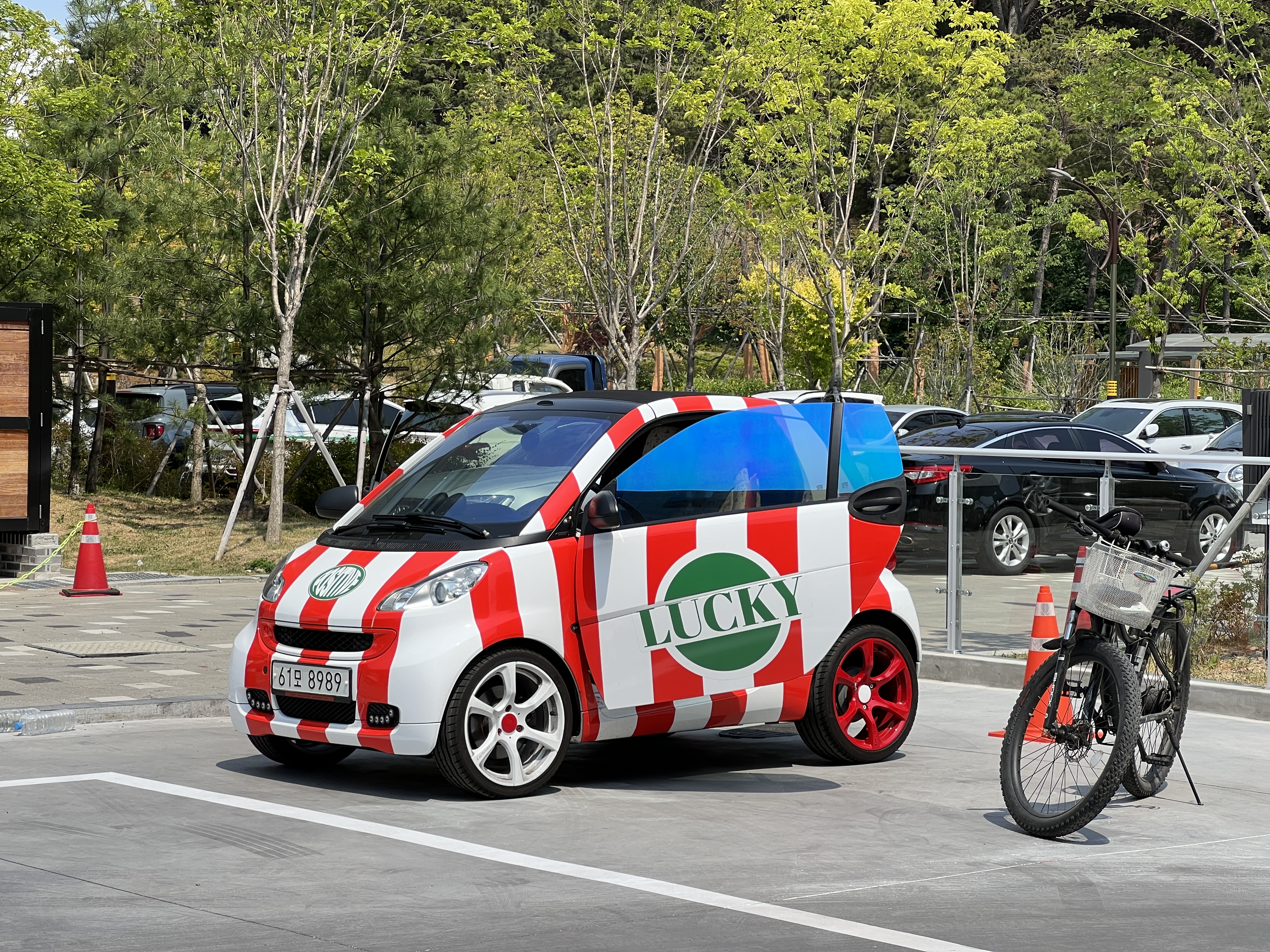 그리고 빵을 받기 전에 주문한 음료를 먼저 받아볼 수 있었는데, 음료는 노홍철 얼굴이 라떼 장식으로 들어가 있는 럭키가이카페와 함께 개인적인 취향에 맞춘 벨지안 초콜릿을 주문했다. 내가 줄을 서서 기다리는 동안 어머니는 드라이브 스루를 빠져나와 장유에서 볼 일이 있던 동생을 다시 태워서 기다리고 있었기 때문에 빠르게 나가려고 했다.