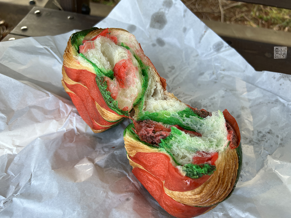 제일 먼저 볼 수 있는 식빵 럭키가이 홍철은 평범한 식빵과 달리 '럭키가이 홍철'이라는 시그니처 메뉴 이름이 붙은 만큼 알록달록한 색깔을 보여주고 있었다. 해당 빵은 가게 내부로 들어오기 위해 줄을 선 나와 달리 드라이브 스루로 줄을 섰던 어머니가 주문을 하셨기 때문에 나는 해당 빵은 체크를 하지 않고 먹고 싶은 빵을 골고루 체크했다.