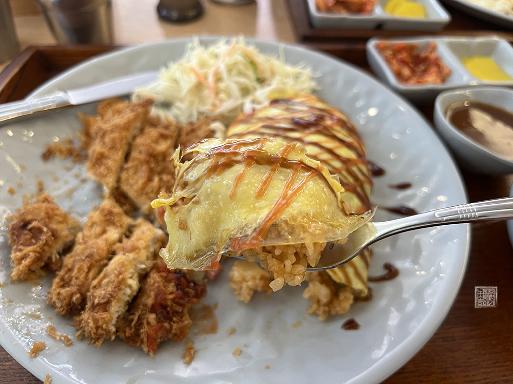 그렇게 오랜만에 어릴 적에 먹었던 느낌 그대로 나온 수제 돈까스와 오므라이스는 딱 그 시절에 먹었던 평범한 퀄리티를 가지고 있는 맛이었다. 유달리 뛰어난 맛이라고 절대 말할 수는 없지만, 평소 우리가 무난하게 먹을 수 있는 돈까스와 오므라이스로 먹을 수 있는 맛을 가지고 있었다고 생각한다.