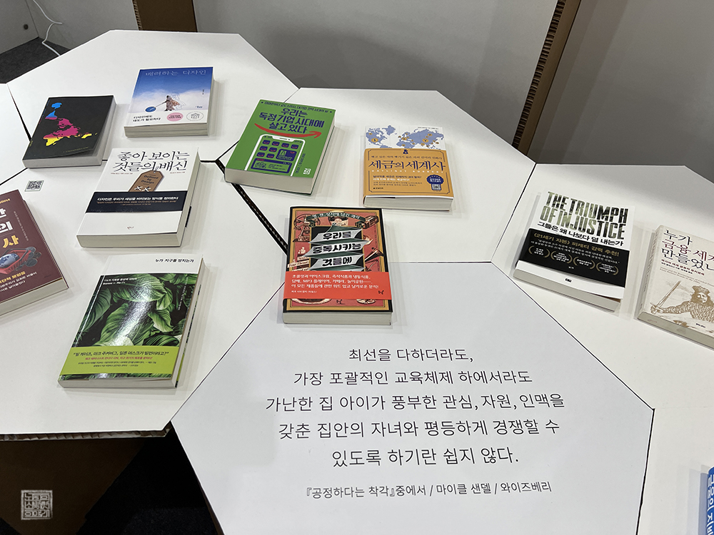 서울 국제 도서전의 장점은 이렇게 평소 열심히 책을 읽는다고 해도 막상 손이 가지 않았던, 미처 눈길이 닿지 않았던 책을 만나볼 수 있다는 점이다. 이곳 '반걸음'을 주제로 전시되어 있는 여러 책은 발걸음을 멈춘 채로 생각에 빠지게 하거나, 천종호 판사님이 새롭게 집필한 <내가 만난 소년에 대하여>도 여기서 알게 되어 잠시 책을 읽어보았다.