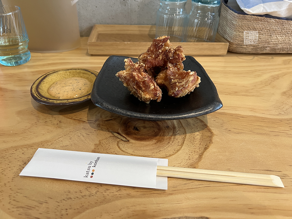하마터면 기다린 보람도 없이 돈가스 가게에 앉지도 못한 채 나올 수도 있었던 위기를 넘긴 이후 나는 호흡을 가다듬고 기다리다가 처음 나온 사이드 메뉴 치킨 가라아게 3조각을 받아볼 수 있었다. 겉모습을 본다면 흔히 볼 수 있는 닭튀김인 치킨 가라아게이지만, 한입 베어 먹어본다면 지금까지 한국에서 먹은 가라아게와 완전히 달랐다.