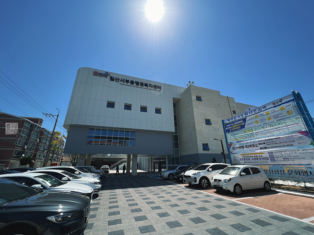 이전 청사는 주차 공간이 협소했을 뿐만 아니라 정리되지 않은 느낌이 강했다. 하지만 이번에 새롭게 지어진 칠산서부동행정복지센터의 청사는 그렇게 많지는 않아도 확실히 깔끔하게 주차장이 정리되고, 주차 관리 직원도 따로 상주를 하고 있는 듯 보여 주차를 하기가 굉장히 편리했다. 그리고 또 한 가지 변화한 점은 문턱이 없어졌다는 것이다.