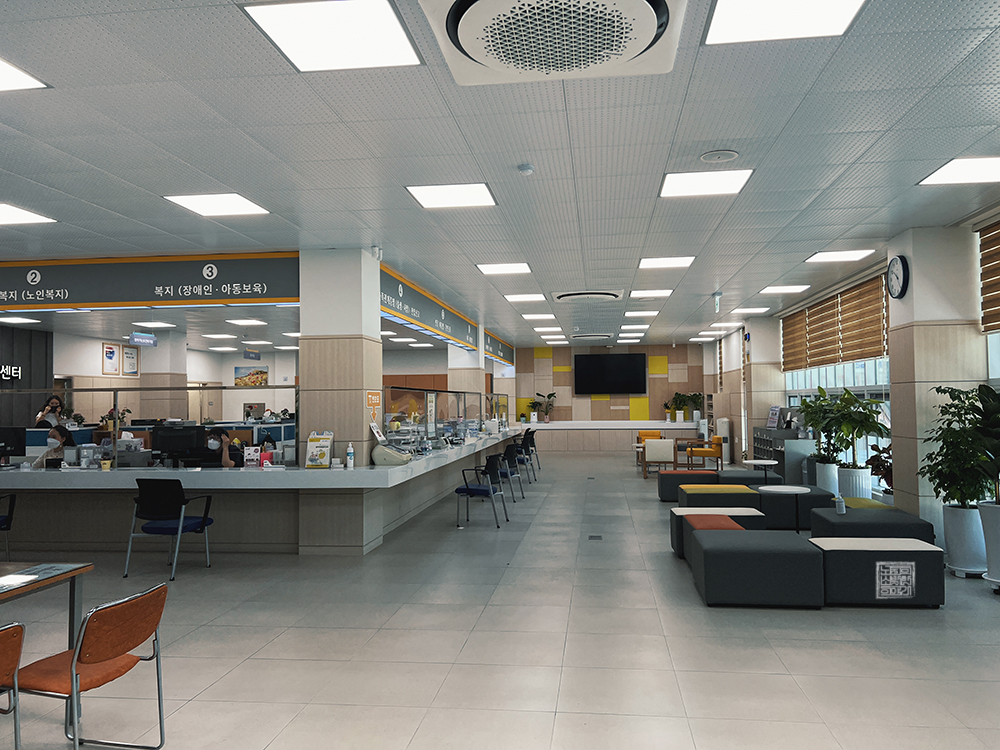 하지만 이렇게 확 넓어진 청사 내부 덕분에 이제 사람들은 다소 차례를 기다릴 필요가 있어도 큰 불편함 없이 소파에 앉아서 기다릴 수 있게 되었다. 단, 한 가지 바라는 점이 있다면 등받이가 없는 소파이다 보니 허리가 불편한 어르신 분들은 이게 조금 힘들지 것 같다는 점이다. 미관상 저런 소파가 보기 좋아도… 음, 아쉬운 건 어쩔 수 없었다.