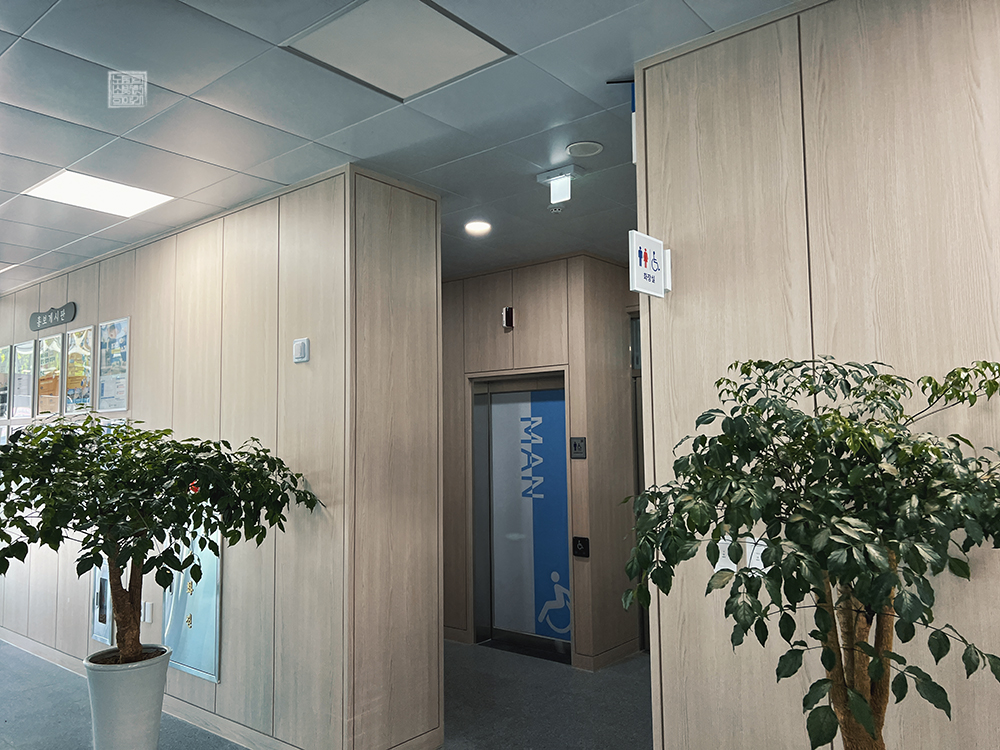 그리고 김해 칠산서부동행정복지센터 내부의 모습을 본다면 입구 쪽에 화장실이 설치되어 있고, 장애인 화장실도 들어가는 입구에서 보았을 때는 충분히 전동 휠체어를 타고 들어갈 수 있는 여유 공간이 있었다. 지난 김해 칠산서부동행정복지센터의 구 청사는 화장실이 내부에 있다 보니 사람들이 이용하기가 어려웠던 것과 상반되는 모습이었다.