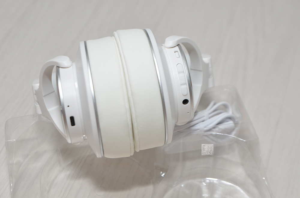 해당 모델은 화이트와 블랙 두 가지 색상으로 발매가 되고 있는데, 개인적으로 화이트 색상이 더 깔끔한 데다 세련미를 갖추고 있다고 생각해서 화이트 모델을 주문했다. 상품의 구성을 본다면 헤드폰 본체 한 개와 함께 충전 케이블을 비롯해 무선 헤드폰이지만 유선 헤드폰으로도 사용할 수 있는 오디오 단자 케이블이 동봉되어 있었다.