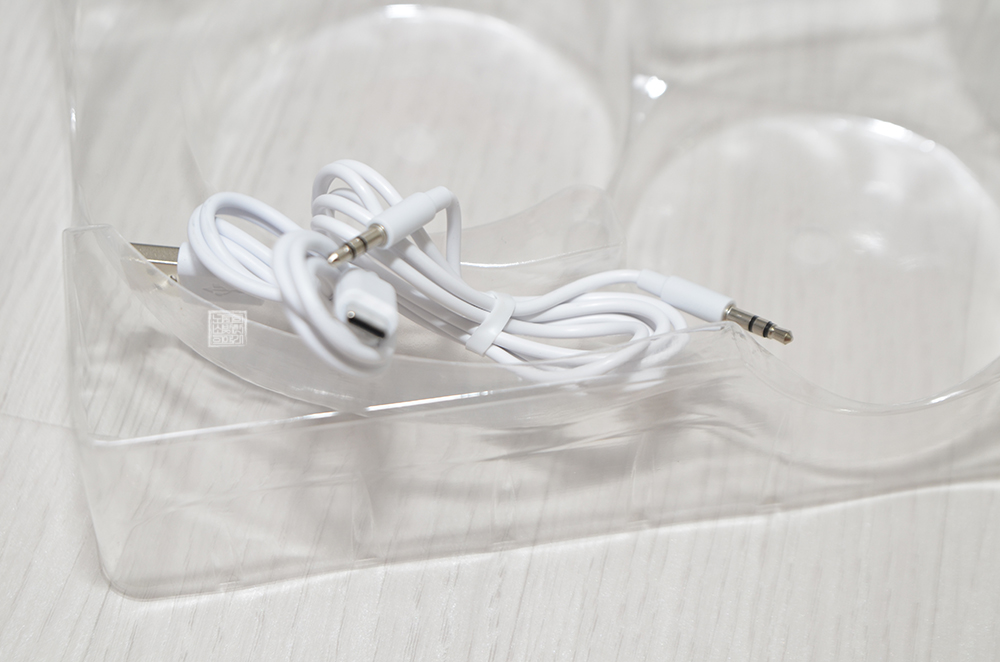 해당 모델은 화이트와 블랙 두 가지 색상으로 발매가 되고 있는데, 개인적으로 화이트 색상이 더 깔끔한 데다 세련미를 갖추고 있다고 생각해서 화이트 모델을 주문했다. 상품의 구성을 본다면 헤드폰 본체 한 개와 함께 충전 케이블을 비롯해 무선 헤드폰이지만 유선 헤드폰으로도 사용할 수 있는 오디오 단자 케이블이 동봉되어 있었다.
