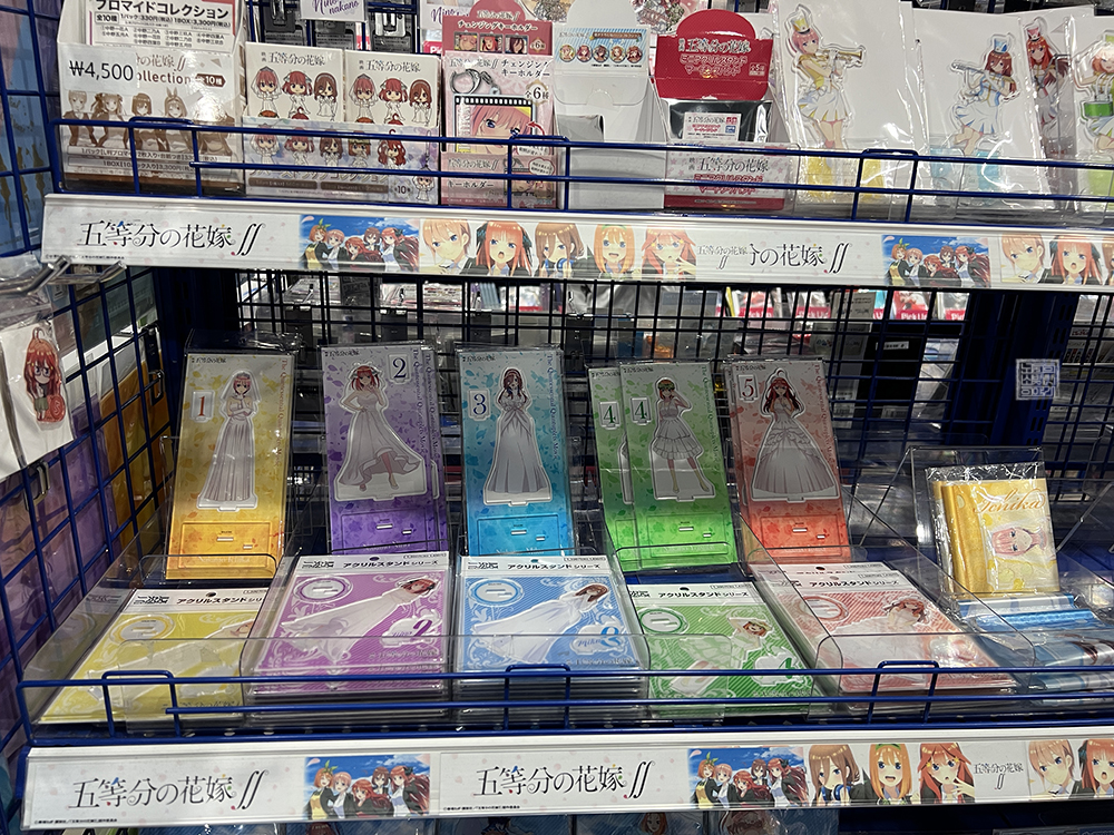 위 사진에서 첨부한 <5등분의 신부> 관련 굿즈는 여전히 많은 재고가 있었고, 2022년 1분기 애니메이션으로 방영된 덕분에 일본 안팎으로 선풍적인 인기를 끌었던 <그 비스크 돌은 사랑을 한다> 관련 굿즈는 재고를 찾아보기 어려웠다. 남은 건 다소 인기가 떨어지는 굿즈 혹은 가격이 비싼 반면에 만족도가 떨어지는 그런 굿즈들 뿐이었다.