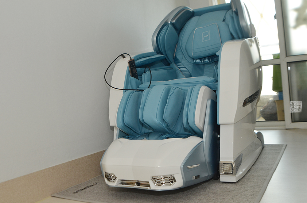 바디프렌드 팬텀 모델은 여러 가지 색상의 모델을 갖추고 있는데, 그중에서 어머니와 내가 개인적으로 마음에 든 건 하얀 배경에 옅은 파란색이 포인트로 들어가 있는 로코코 블루 모델이었다. 위 사진에서 볼 수 있듯이 뭔가 안마의자를 배치한 곳에 산뜻한 분위기를 주는 동시에 안마의자가 굉장히 깔끔하게 잘 만들어졌다는 것을 알 수 있다.