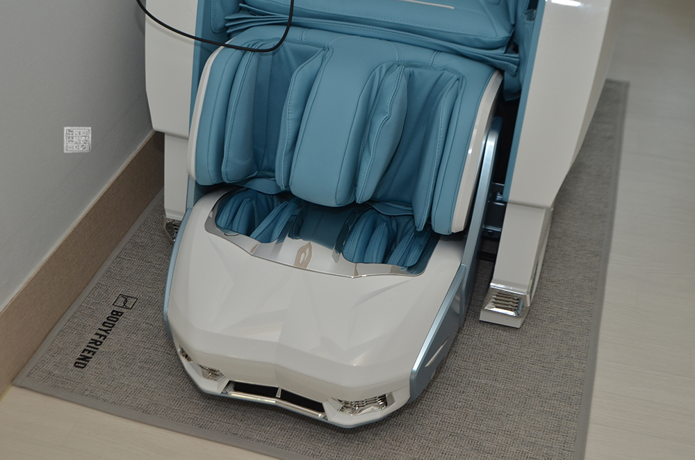 바디프렌드 팬텀 모델은 여러 가지 색상의 모델을 갖추고 있는데, 그중에서 어머니와 내가 개인적으로 마음에 든 건 하얀 배경에 옅은 파란색이 포인트로 들어가 있는 로코코 블루 모델이었다. 위 사진에서 볼 수 있듯이 뭔가 안마의자를 배치한 곳에 산뜻한 분위기를 주는 동시에 안마의자가 굉장히 깔끔하게 잘 만들어졌다는 것을 알 수 있다.